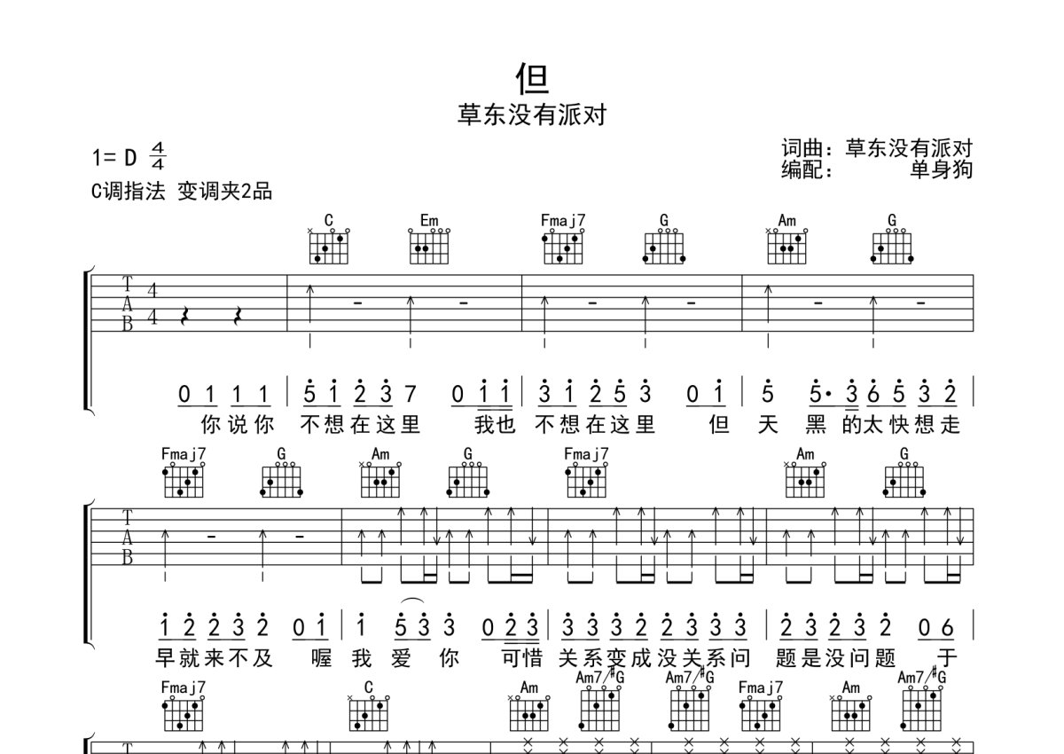 草东没有派对《但》吉他谱 - C调弹唱六线谱
