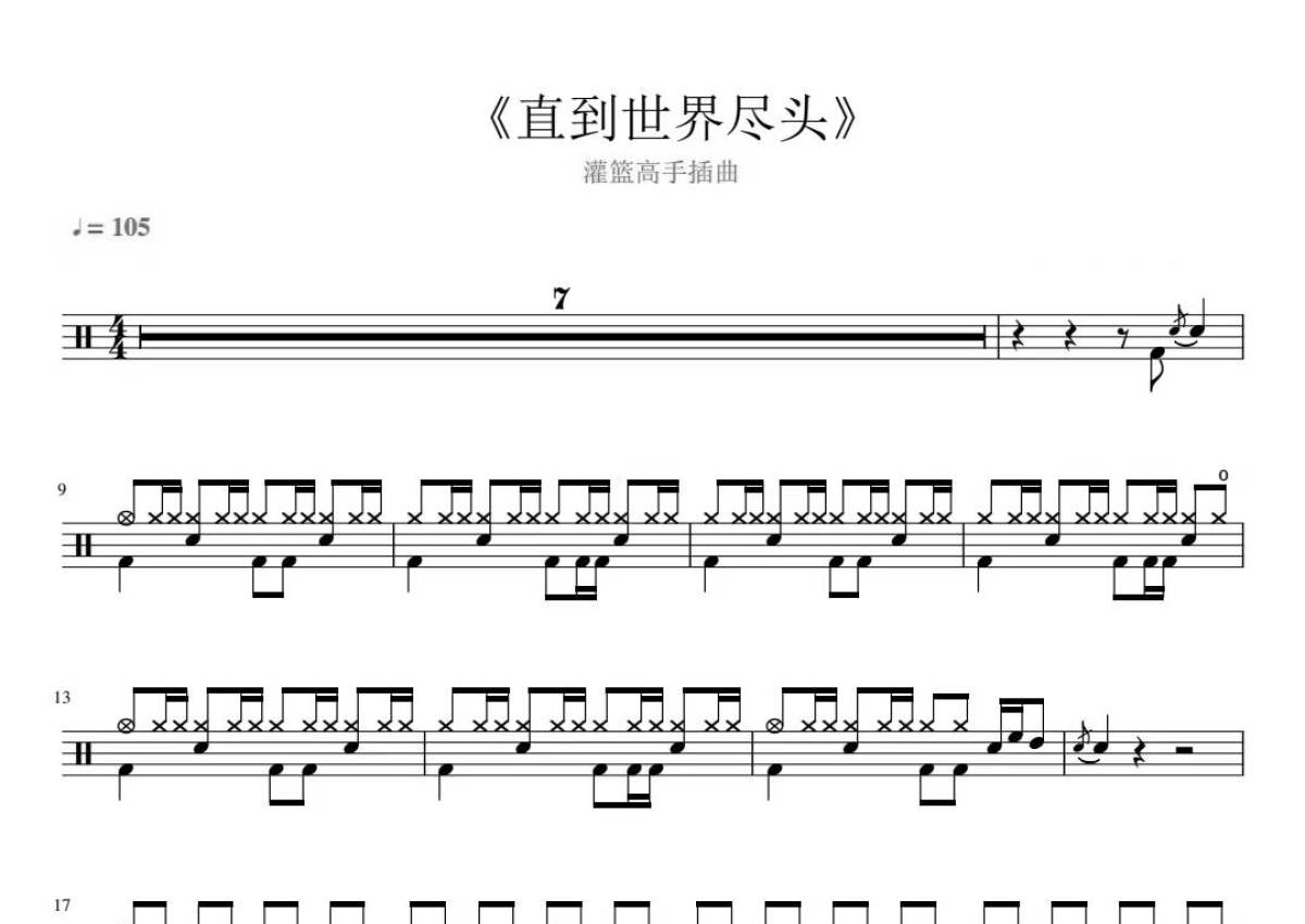 灌篮高手插曲《直到世界尽头》鼓谱 - 架子鼓谱