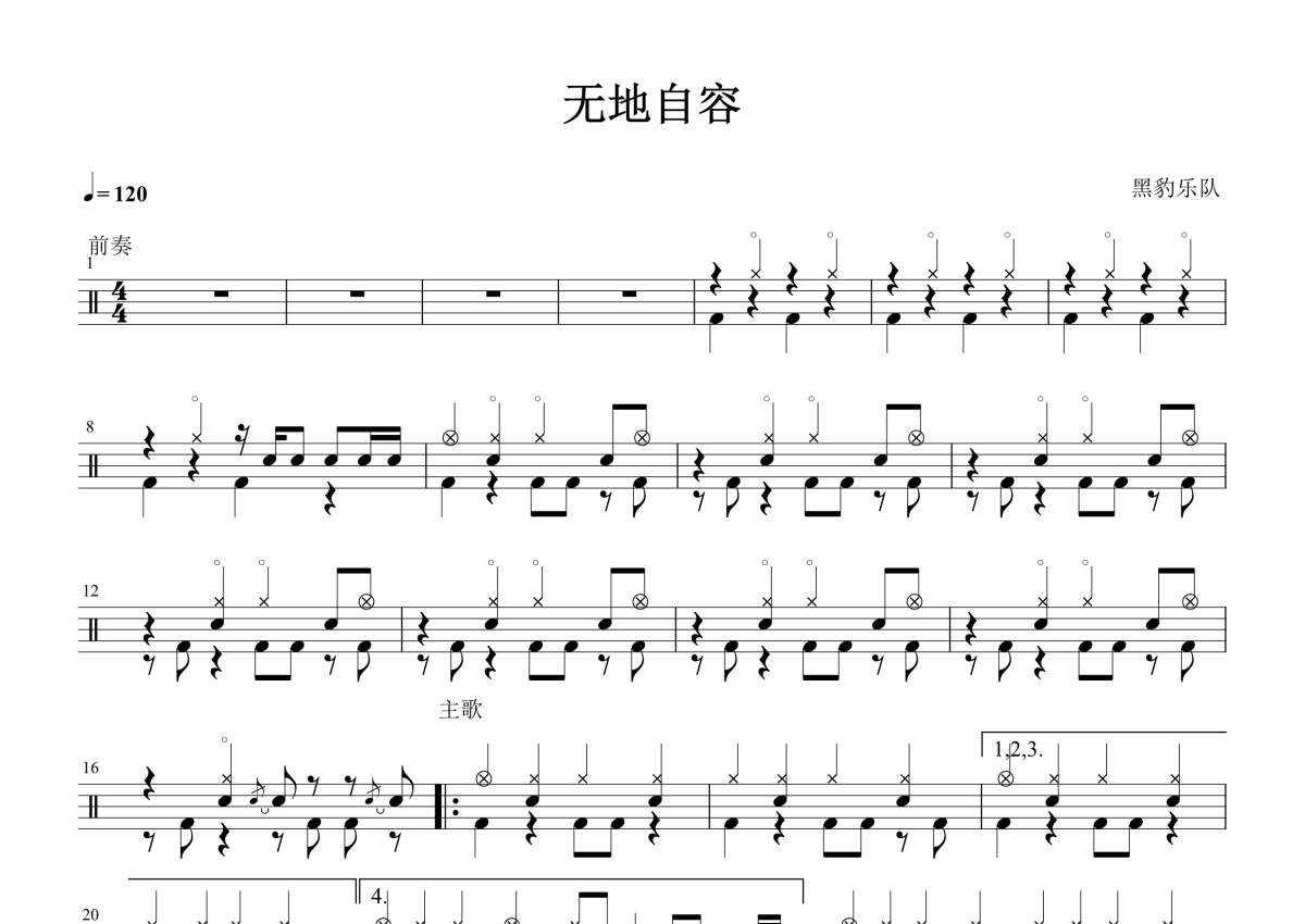 黑豹乐队《无地自容》鼓谱 - 架子鼓谱