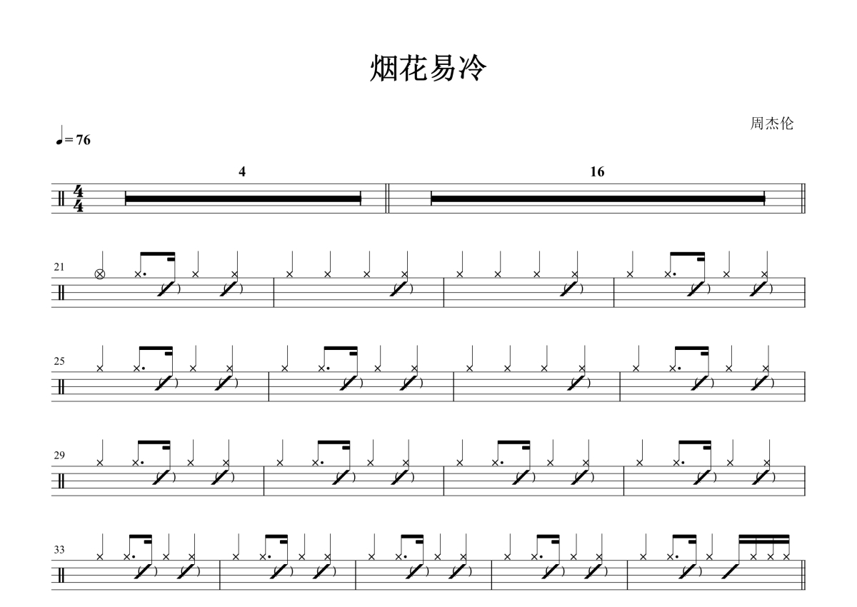 周杰伦《烟花易冷》鼓谱 - 架子鼓谱