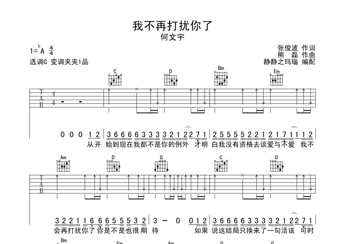 何文宇《我不再打扰你了》吉他谱 - G调弹唱六线谱