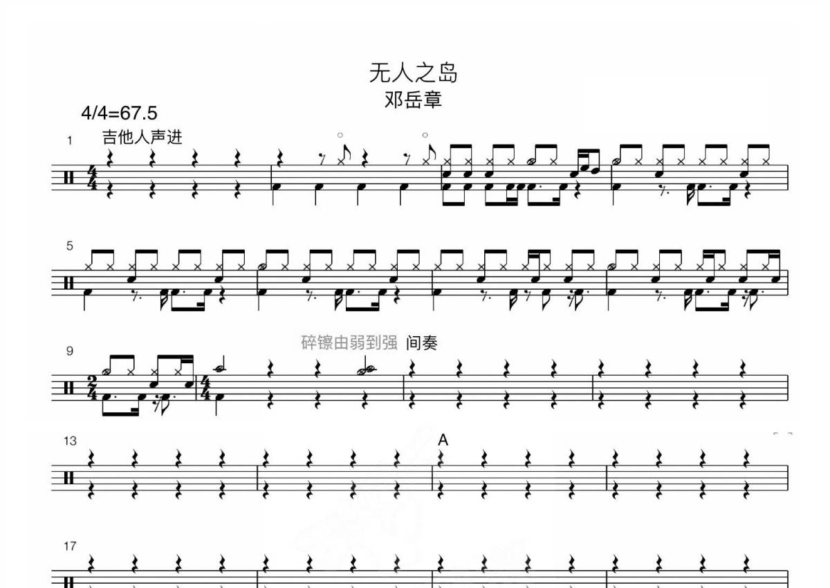 邓岳章《无人之岛》鼓谱 - 架子鼓谱