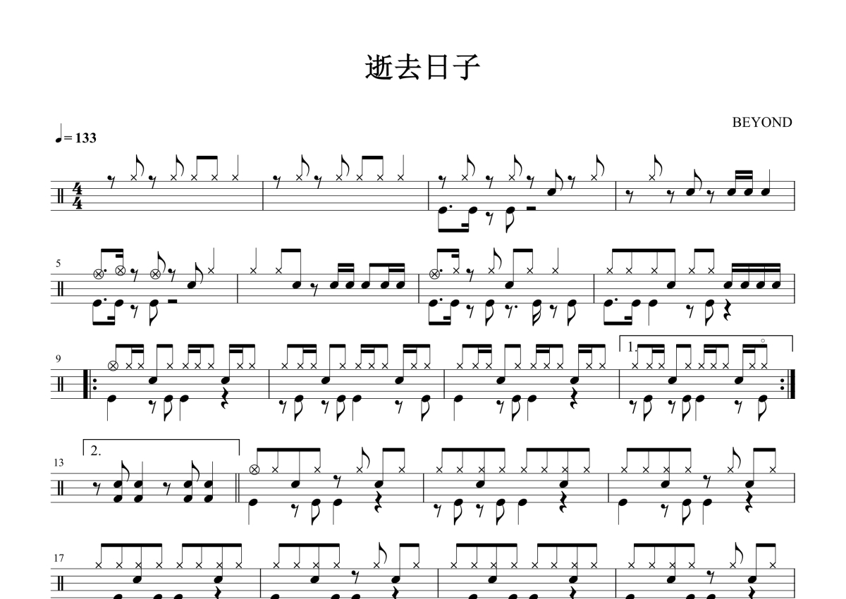 BEYOND《逝去日子》鼓谱 - 架子鼓谱