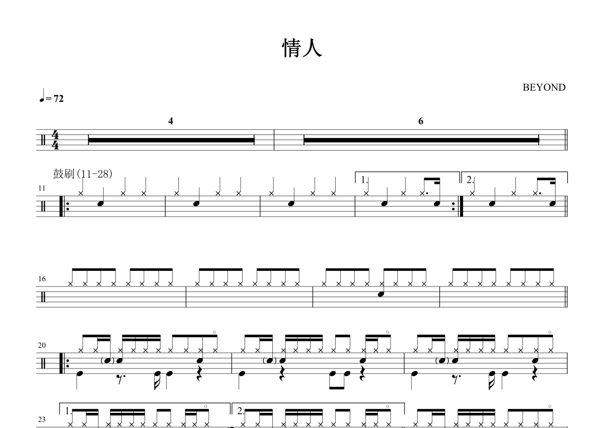 BEYOND《情人》鼓谱 - 架子鼓谱