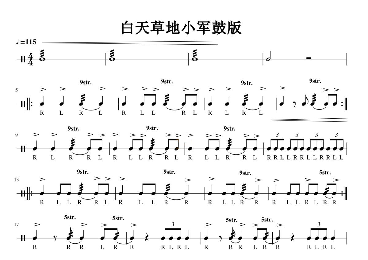 《植物大战僵尸之白天草地》是小军鼓演奏演唱的一首歌曲,拍号为4/4拍,歌曲速度为每分钟115拍,这份鼓谱共有一张高清图谱,图谱由 @打鼓谱 编配上传,图谱使用五线谱编配,使用这份植物大战僵尸之白天草地架子鼓谱,你将能够轻松地敲打出这首小军鼓演奏的植物大战僵尸之白天草地,快来尝试吧。植物大战僵尸之白条草地 主题曲 制作不易,多多支持!。