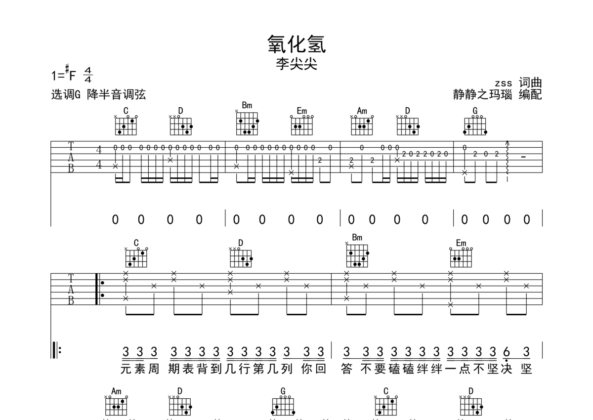 李尖尖《氧化氢》吉他谱 - G调弹唱六线谱