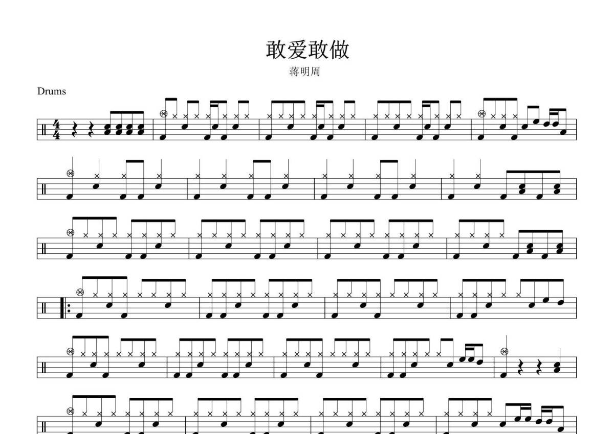 蒋明周《敢爱敢做》鼓谱 - 架子鼓谱