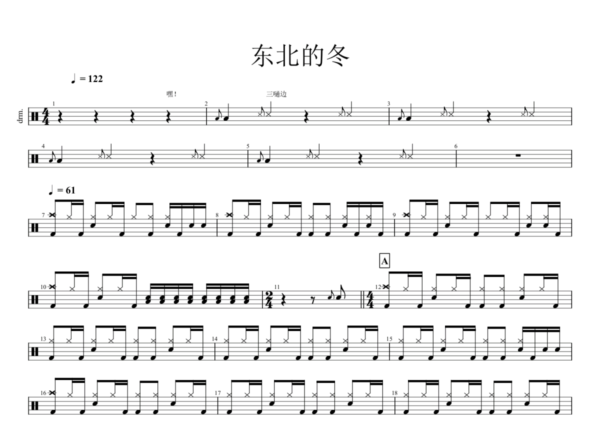 小沈阳《东北的冬》鼓谱 - 架子鼓谱