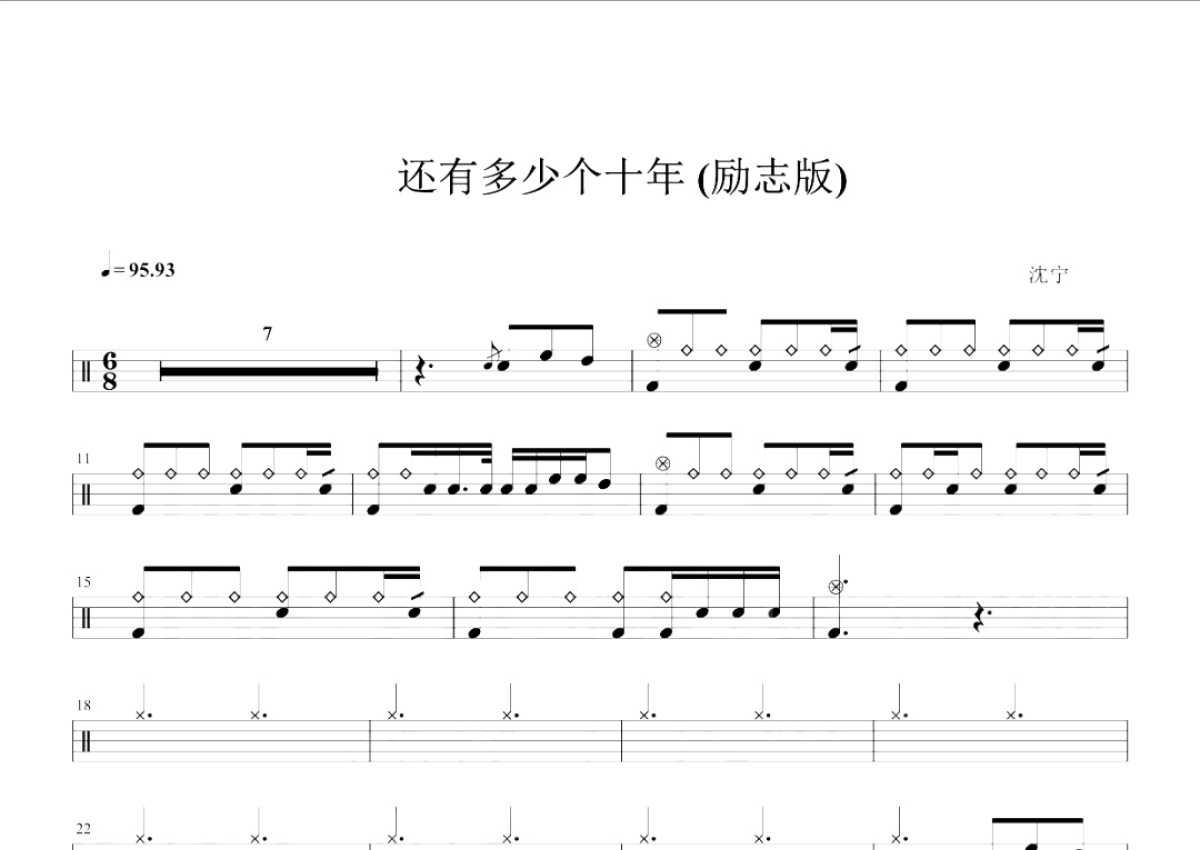 沈宁《还有多少个十年》鼓谱 - 架子鼓谱 - 励志版