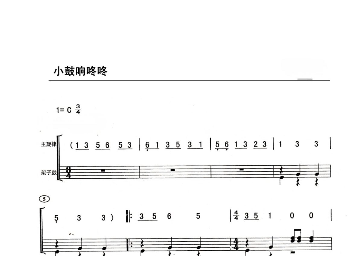 儿童入门级曲目《小鼓响咚咚》鼓谱 - 架子鼓谱
