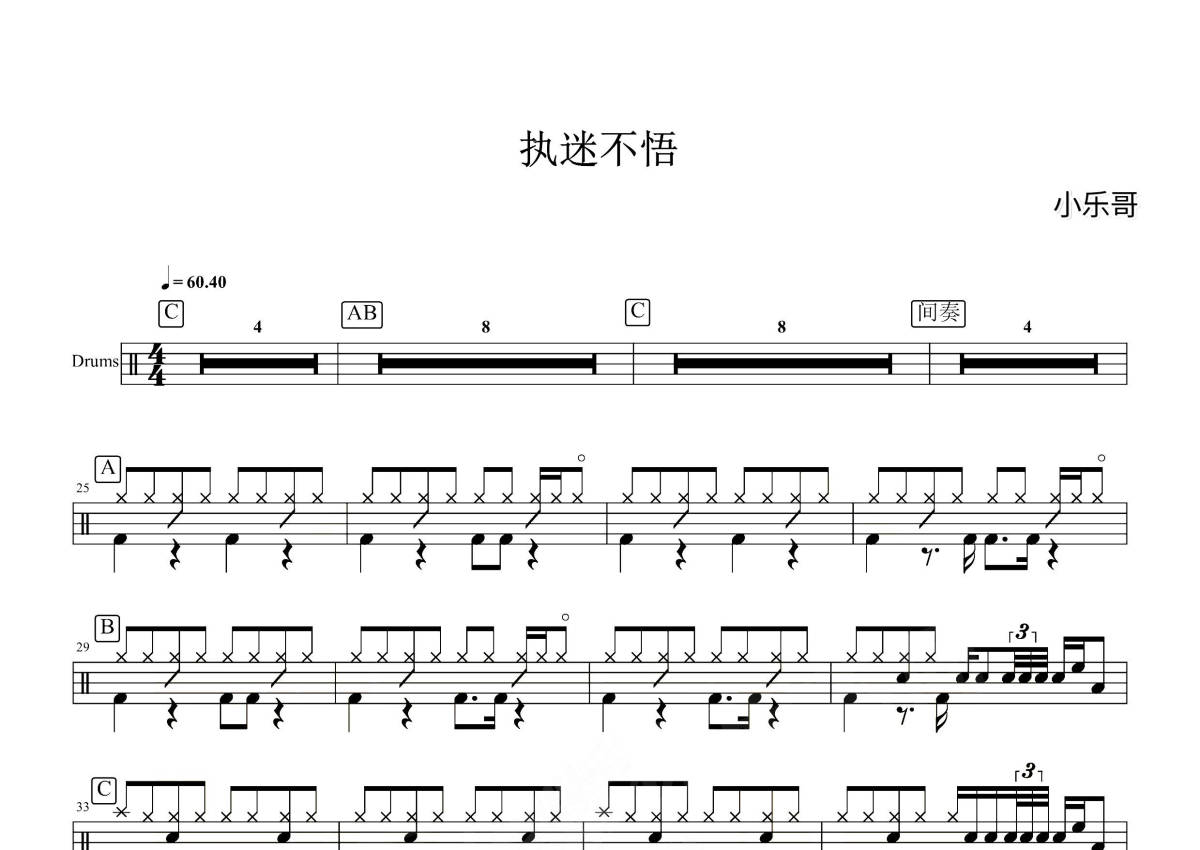 小乐哥《执迷不悔》鼓谱 - 架子鼓谱