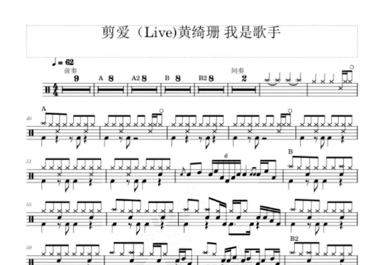 黄绮珊《剪爱》鼓谱 - 架子鼓谱