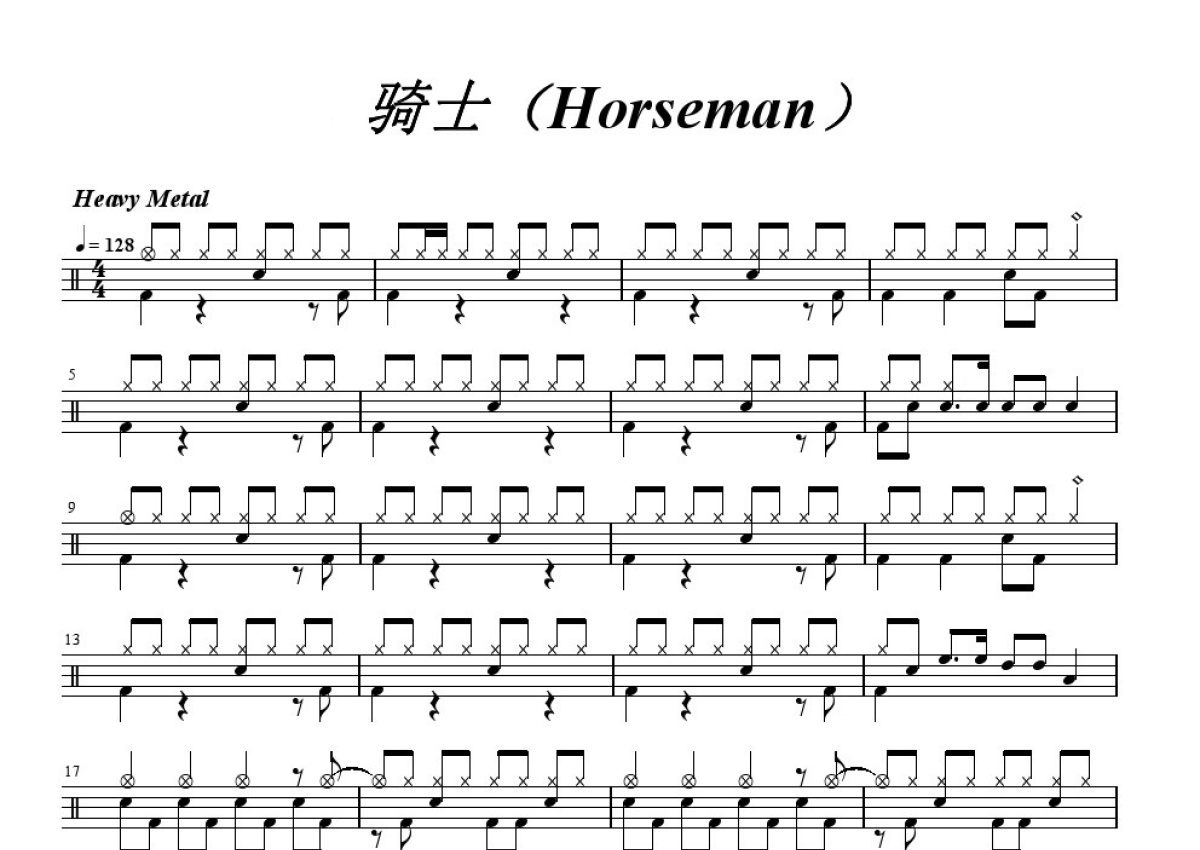 《骑士》是考级演唱的一首歌曲,拍号为4/4拍,这份鼓谱共有一张高清图谱,图谱由 @打鼓谱 编配上传,图谱使用五线谱编配,使用这份骑士架子鼓谱,你将能够轻松地敲打出这首考级的骑士,快来尝试吧。三级难度。
