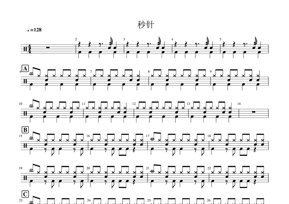 李克勤/王赫野《秒针》鼓谱 - 架子鼓谱