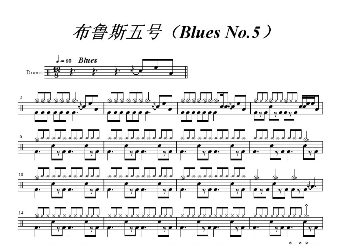考级《布鲁斯5号》鼓谱 - 架子鼓谱