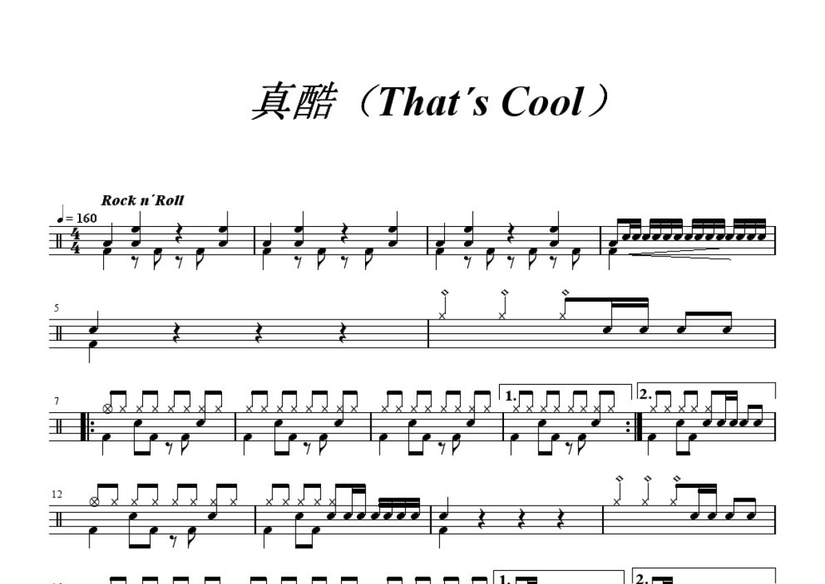 四级考级《真酷》鼓谱 - 架子鼓谱