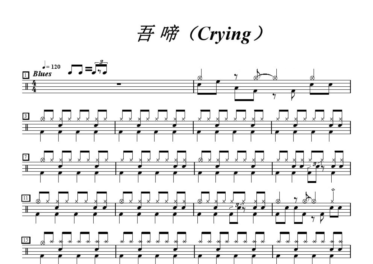 四级考级《crying》鼓谱 - 架子鼓谱