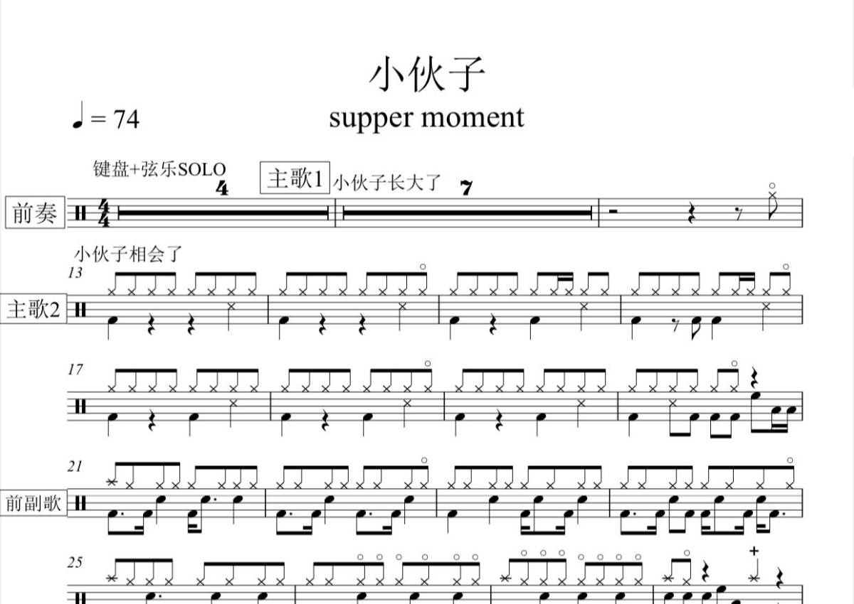 supper moment《小伙子》鼓谱 - 架子鼓谱