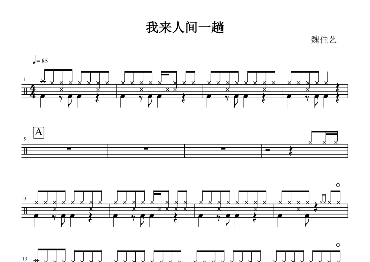 魏佳艺《我来人间一趟》鼓谱 - 架子鼓谱