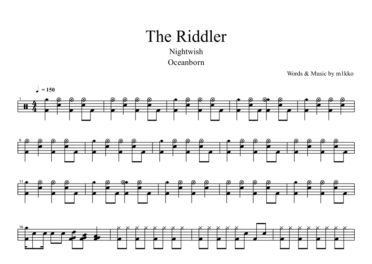 Nightwish夜愿《The Riddler》鼓谱 - 架子鼓谱
