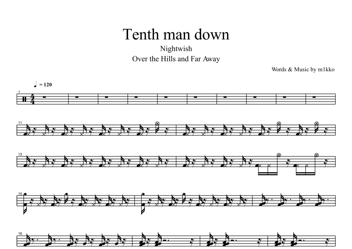Nightwish夜愿《Tenth man down》鼓谱 - 架子鼓谱
