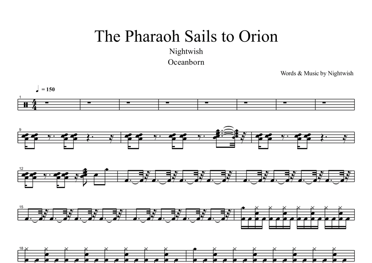 Nightwish夜愿《The Pharaoh Sails to Orion》鼓谱 - 架子鼓谱
