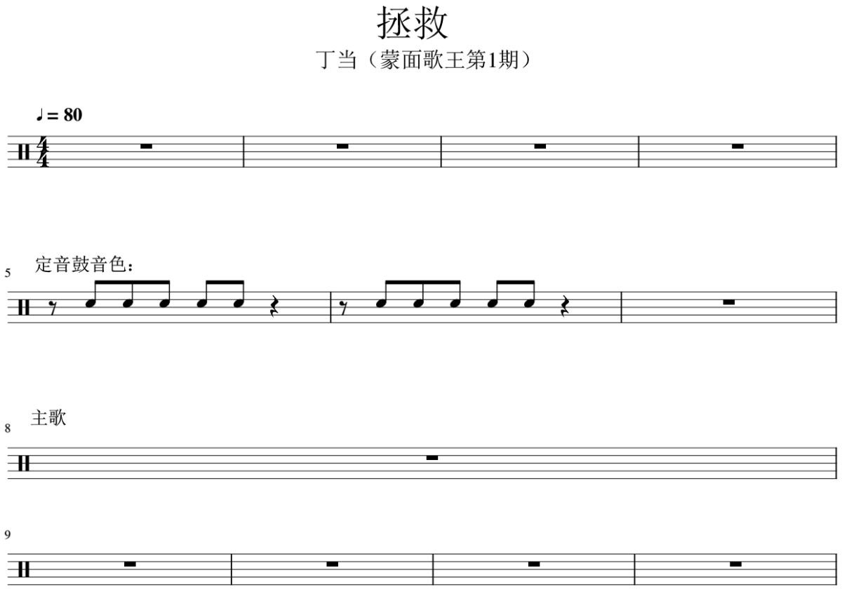 丁当《拯救》鼓谱 - 架子鼓谱 - 蒙面歌王第一期