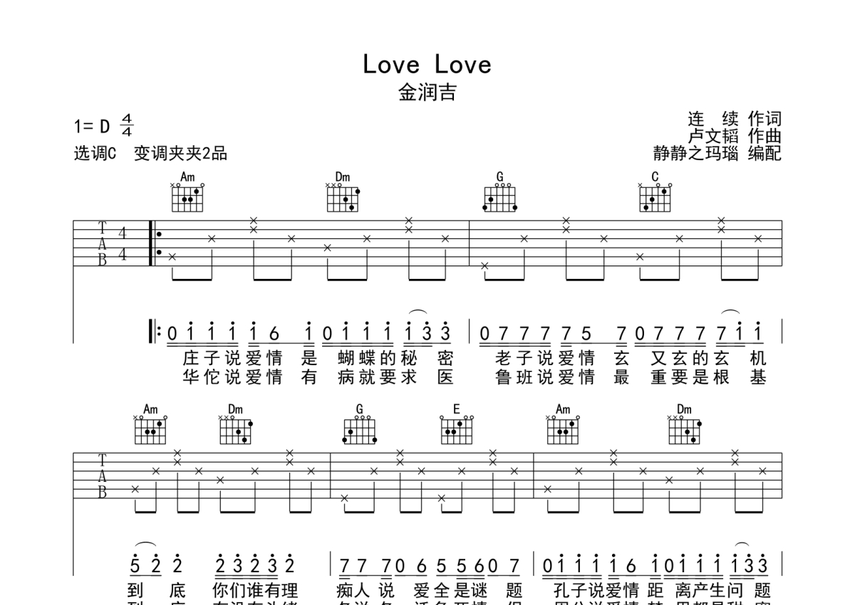 金润吉《Love Love》吉他谱 - C调弹唱六线谱