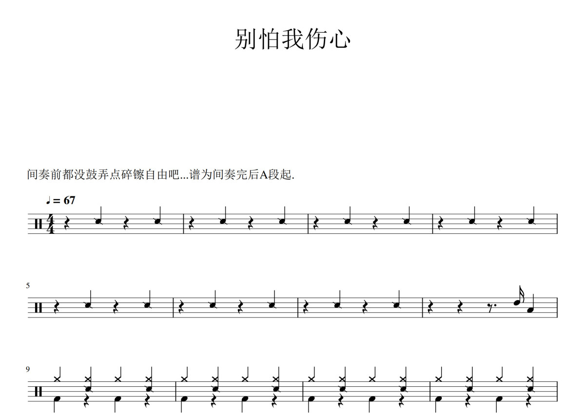 张信哲《别怕我伤心》鼓谱 - 架子鼓谱