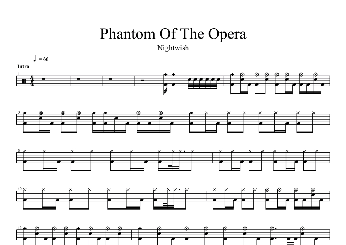 Nightwish《Phantom Of The Opera》鼓谱 - 架子鼓谱