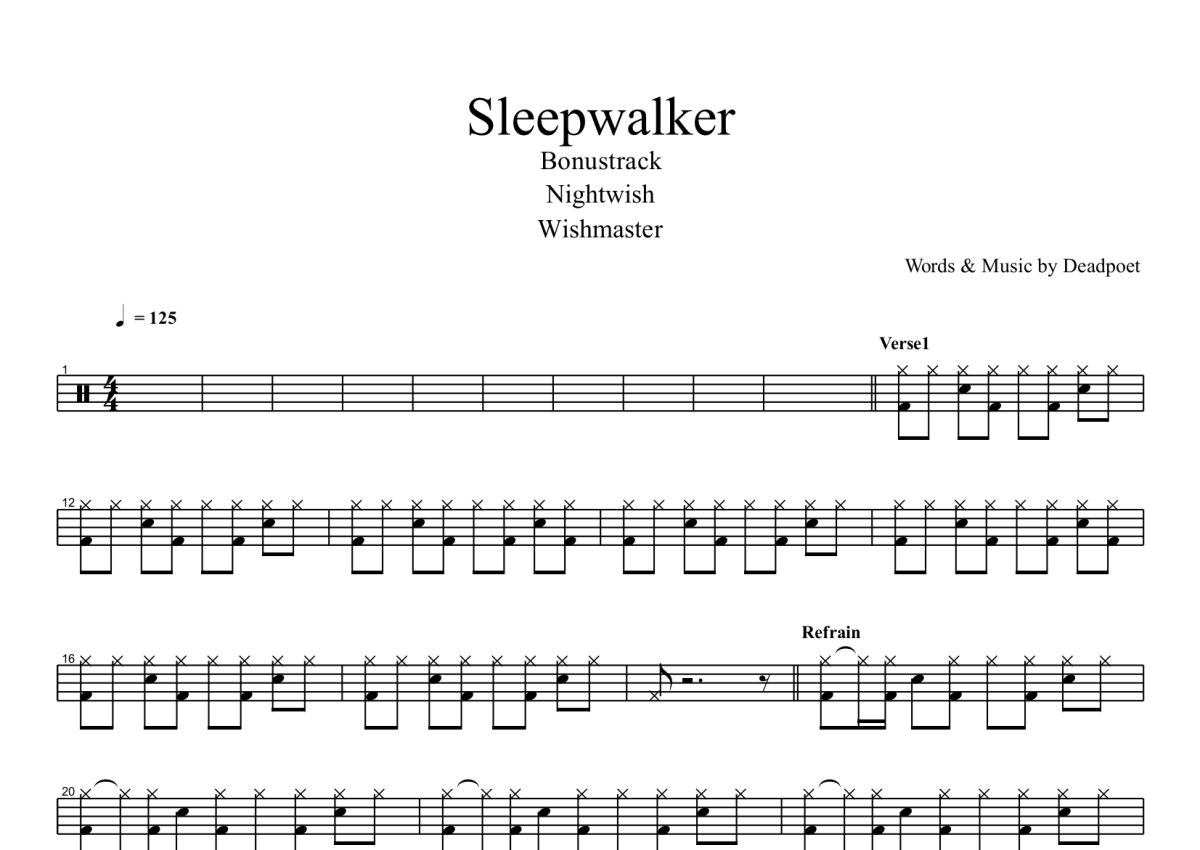 Nightwish《Sleepwalker》鼓谱 - 架子鼓谱