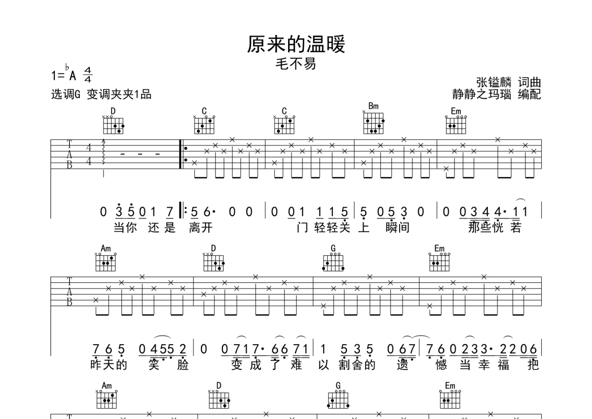毛不易《原来的温暖》吉他谱 - G调弹唱六线谱