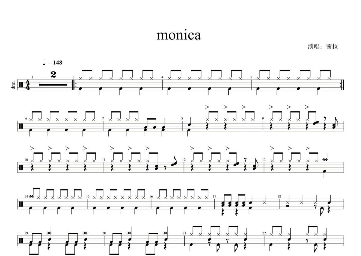 茜拉《monica》鼓谱 - 架子鼓谱