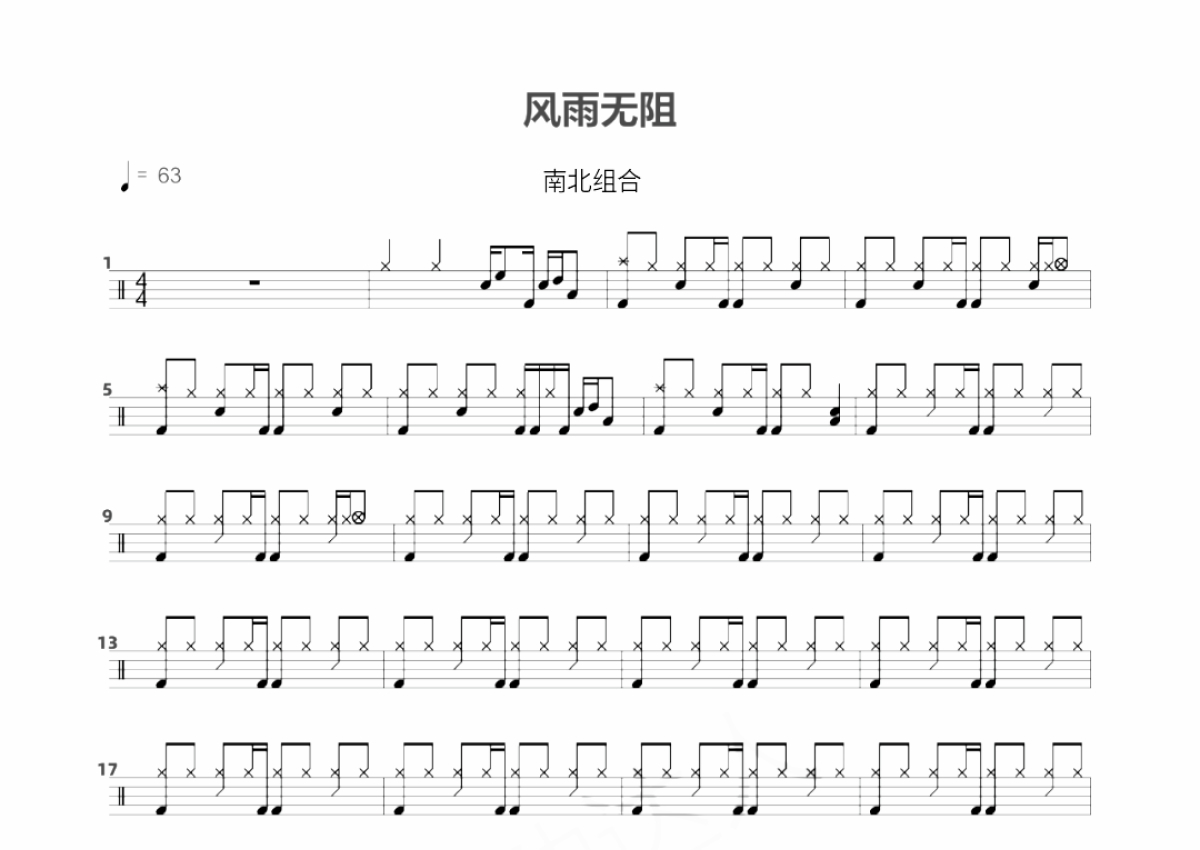 南北组合《风雨无阻》鼓谱 - 架子鼓谱