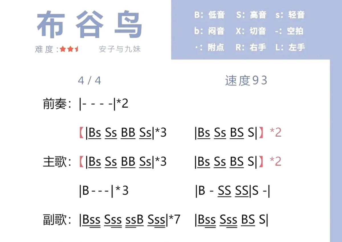 安子与九妹《布谷鸟》鼓谱 - 架子鼓谱