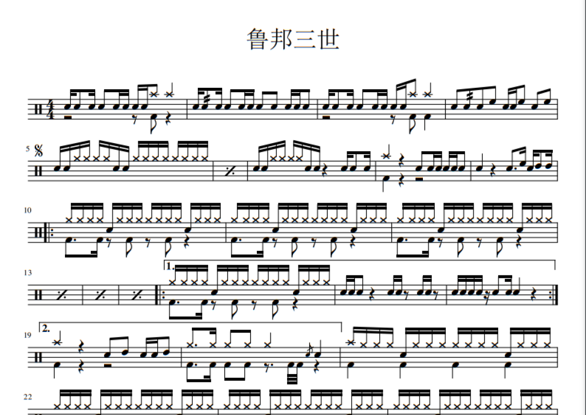 《鲁邦三世》是考级曲演唱的一首歌曲,拍号为4/4拍,这份鼓谱共有两张高清图谱,图谱由 @打鼓谱 编配上传,图谱使用五线谱编配,使用这份鲁邦三世架子鼓谱,你将能够轻松地敲打出这首考级曲的鲁邦三世,快来尝试吧。《鲁邦三世》是日本漫画家Monkey Punch(モンキー.パンチ,本名加藤一彦)的漫画系列作品,1967年8月10日在双叶社《周刊漫画Action》创刊号上开始连载,1971年TV动画初登荧屏,至今已超过40年并仍在放送中,一直保持极高的人气,是日本动漫界名副其实的不死鸟,被誉为日本国民级动漫。该作品已被陆续改编为电视动画、剧场版、OVA、游戏等。