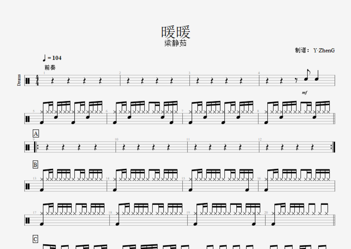 梁静茹《暖暖》鼓谱 - 架子鼓谱