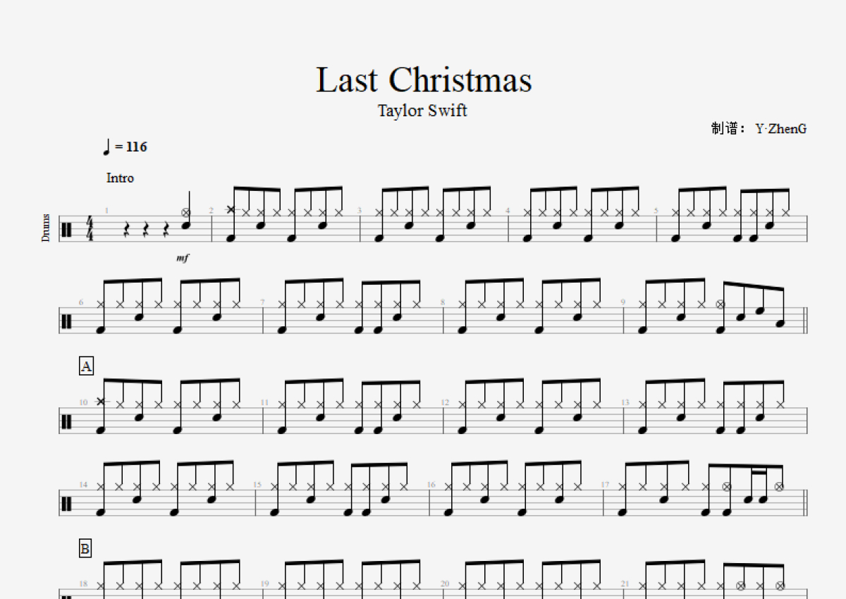 Taylor Swift《Last Christmas》鼓谱 - 架子鼓谱