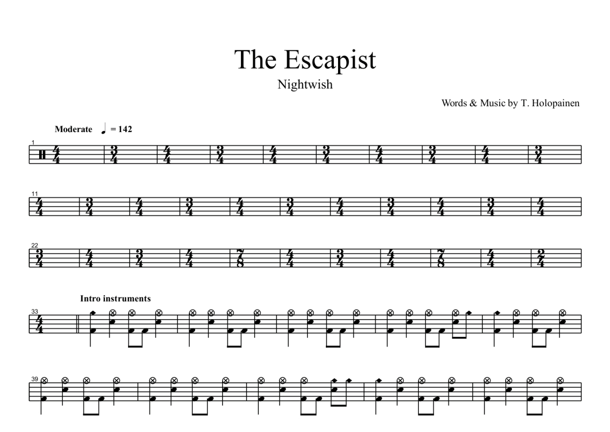 Nightwish《The Escapist》鼓谱 - 架子鼓谱