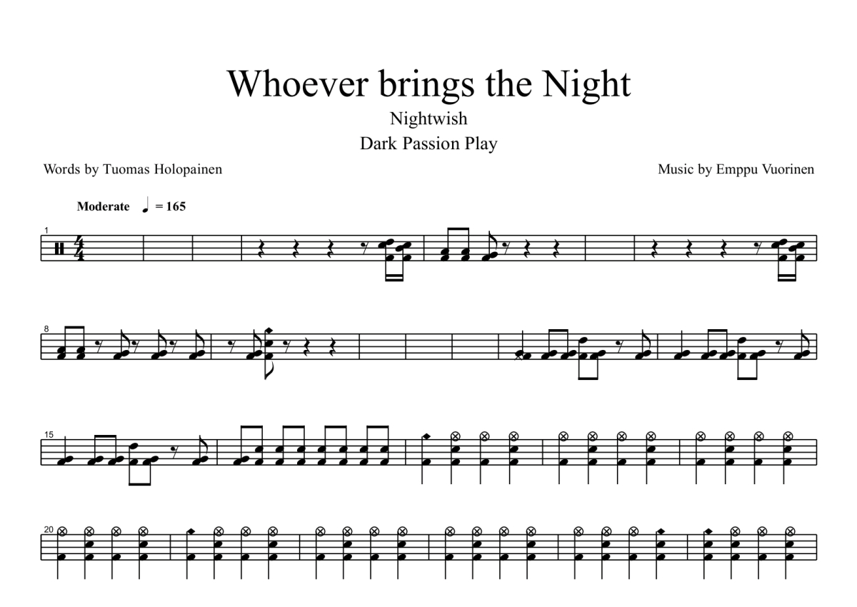 Nightwish《Whoever brings the Night》鼓谱 - 架子鼓谱