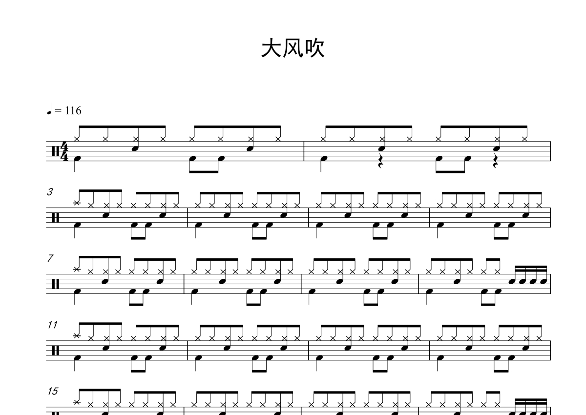 王赫野《大风吹》鼓谱 - 架子鼓谱