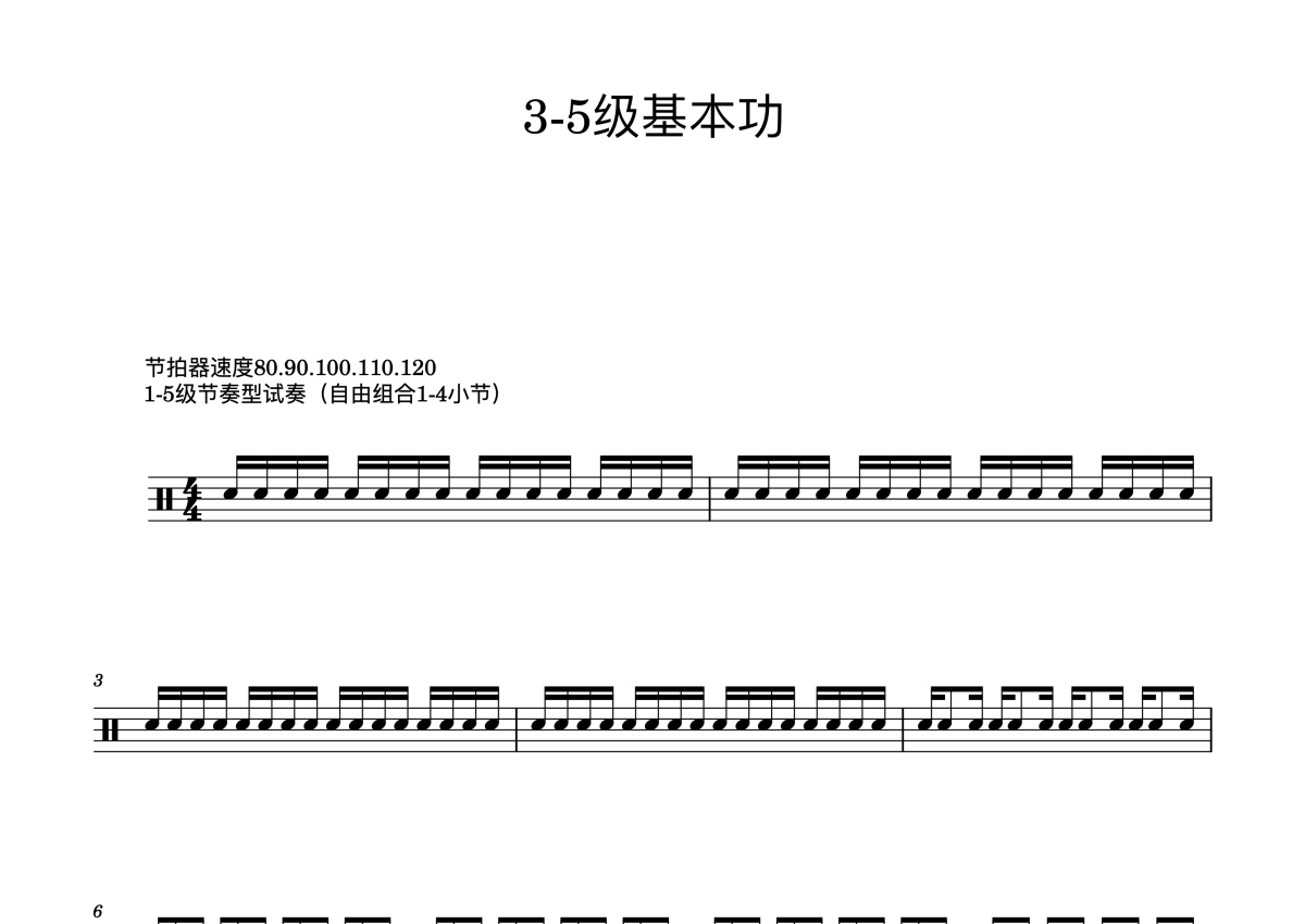 小军鼓《3-5级基本功》鼓谱 - 架子鼓谱