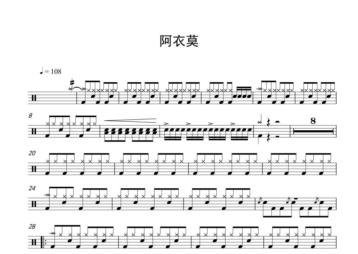 阿吉太组合《阿衣莫》鼓谱 - 架子鼓谱