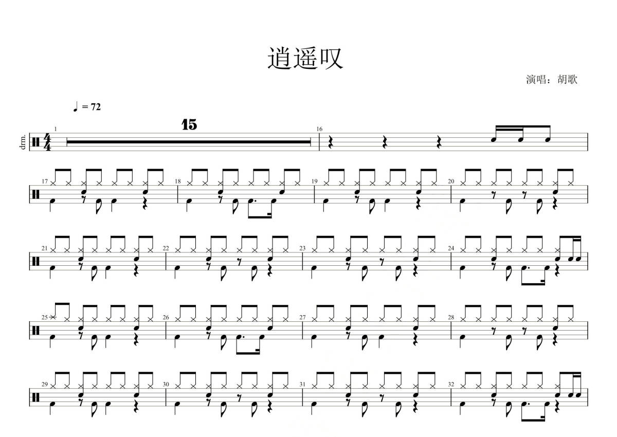 胡歌《逍遥叹》鼓谱 - 架子鼓谱