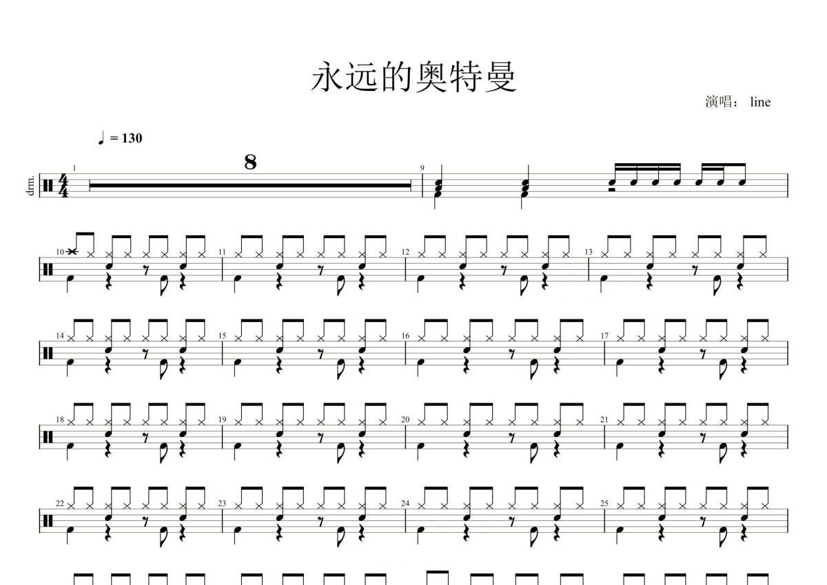 line《永远的奥特曼》鼓谱 - 架子鼓谱