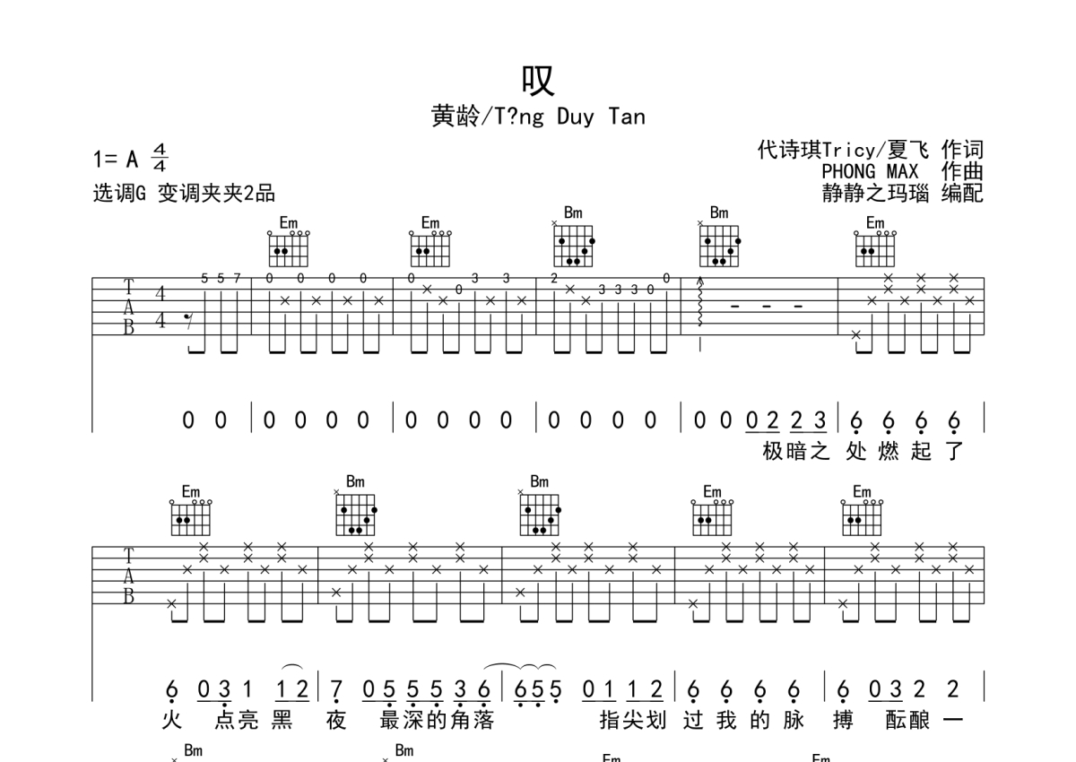 黄龄《叹》吉他谱 - G调弹唱六线谱
