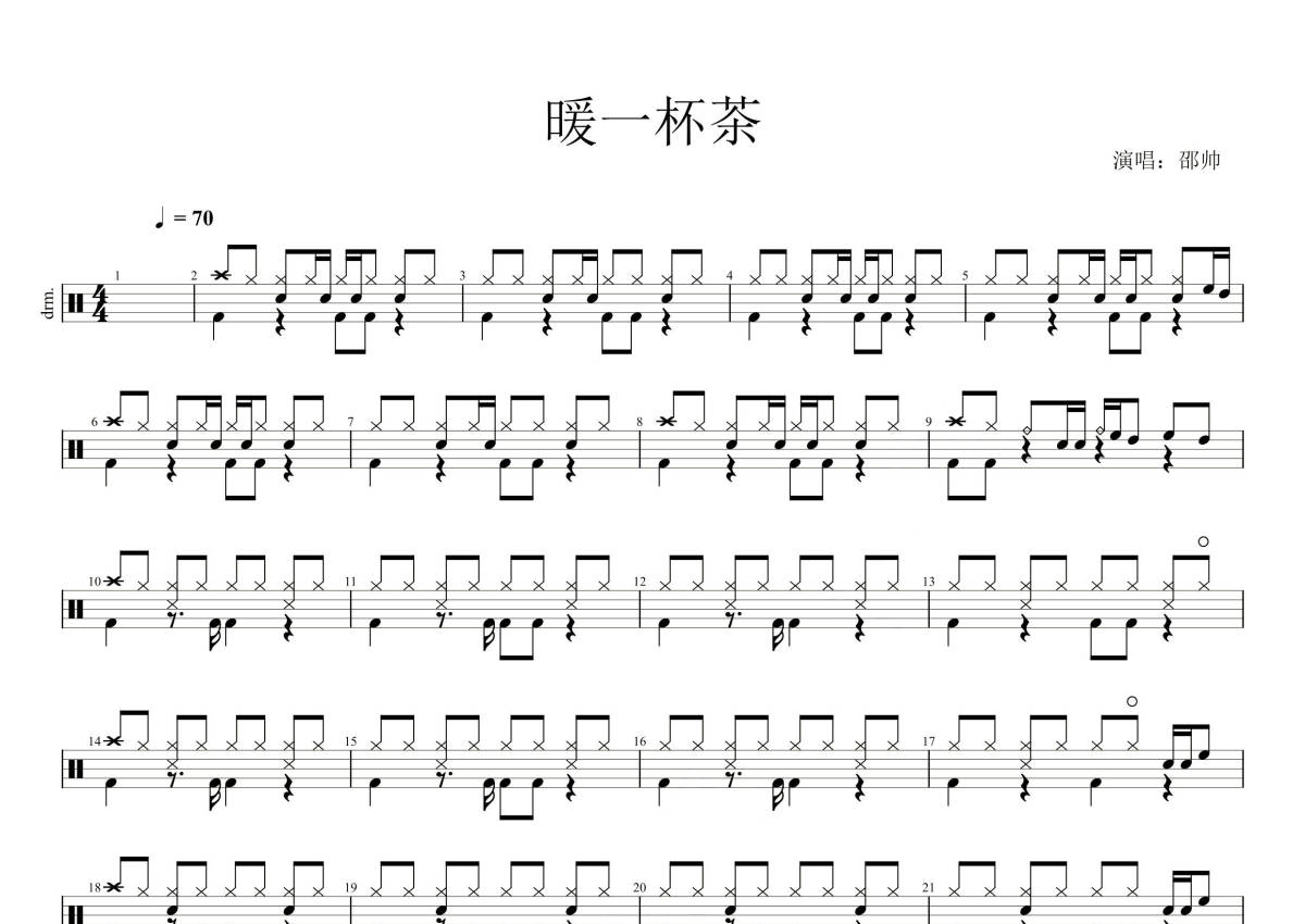 邵帅《暖一杯茶》鼓谱 - 架子鼓谱