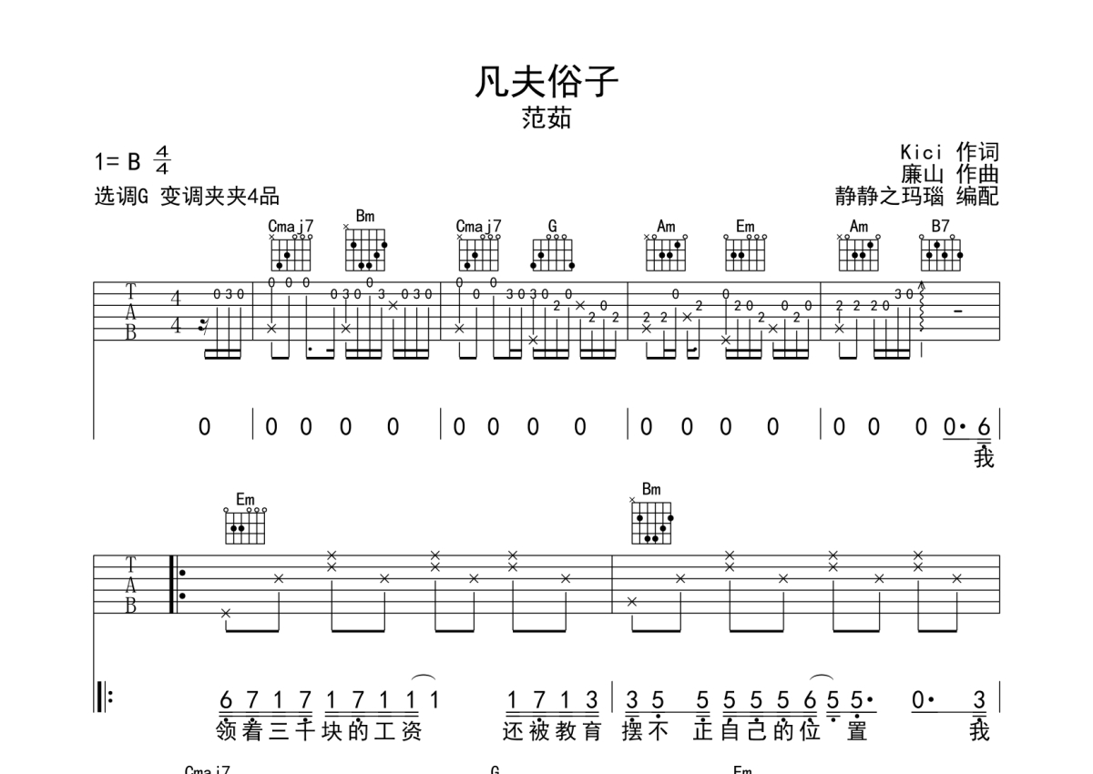 范茹《凡夫俗子》吉他谱 - G调弹唱六线谱