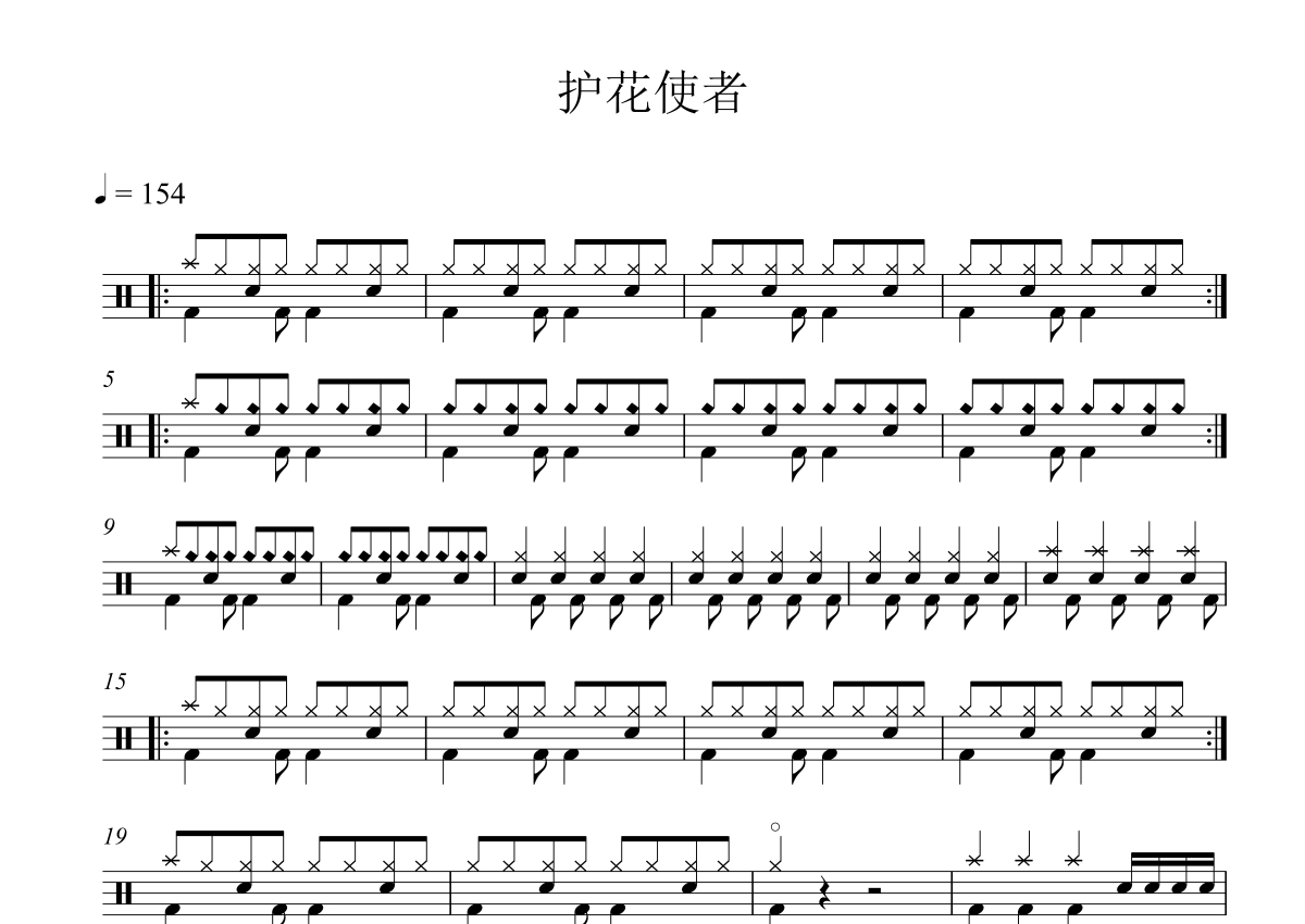 《护花使者》是李克勤演唱的一首歌曲,拍号为4/4拍,歌曲速度为每分钟154拍,这份鼓谱共有两张高清图谱,图谱由 @打鼓谱 编配上传,图谱使用五线谱编配,使用这份护花使者架子鼓谱,你将能够轻松地敲打出这首李克勤的护花使者,快来尝试吧。《护花使者》是中国香港男歌手 李克勤 演唱的 一首粤语歌曲 ,由 长谷川 集平作曲, 潘伟源 填词, 苏德华 编曲,流派 Pop , 发布于1991年6月9日,收录于专辑《 雨中街头剧 》。 (共2页)本人是开鼓校的,非常合适集体课的教学,让学生一节课就能掌握。