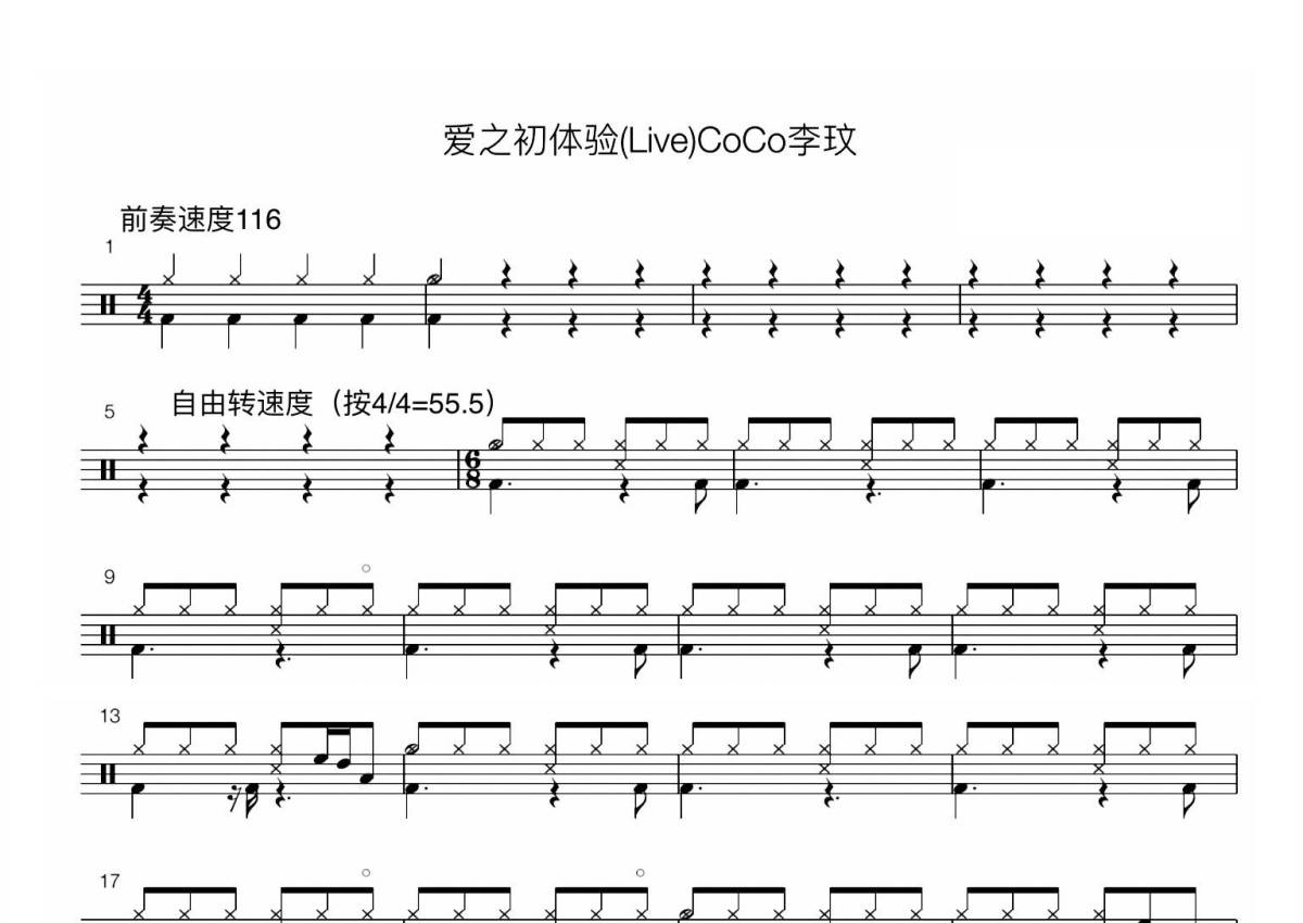 CoCo李纹《爱之初体验》鼓谱 - 架子鼓谱